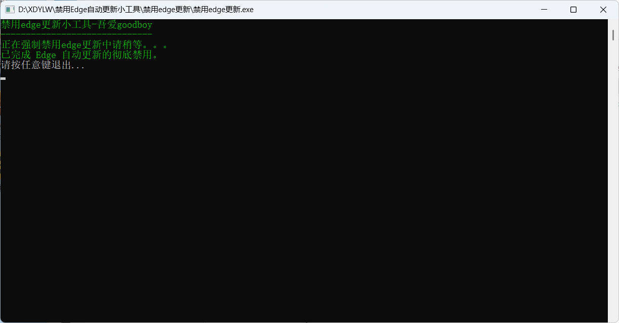 执行程序后,工具会自动禁用Edge更新