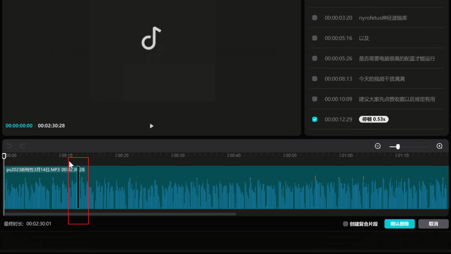 现在做短视频,要求在最短时间输出更多内容,今天给大家推荐一个完全免费的音视频自动剪辑神器,可以做到只减时长,不减内容。 软件支持Windows跟mac系统。 以我这段口播音频举例,放大看,会发现有很多的停顿,这些停顿都是无意义的,如果在au里面一断一断删除,可是一个大工程,但是用自动剪辑神器,就很简单了。 打开软件,点击,选择音频,可以看到顶部默认有三个设置,分别是 稳健,精炼,紧凑,现在使用的是紧凑进行剪辑,片段间隔0秒,智能过滤了27秒。, 如果是选择稳健,片段间隔0.5秒,点击重新过滤,会发现没有剪辑的断点,说明音频中没有0.5秒以上的间隔,也就不会剪辑,选择精炼,片段间隔0.23秒,点重新过滤,智能过滤了6秒的间隔停顿。 如果感觉默认的3种间隔设置不合适,打开 手动调节参数,调节过滤的音量,跟片段的间隔,我这边设置0.1秒,点重新过滤,发现过滤了15秒。使用紧凑过滤,点击 导出,选择 过滤后音频,重新生成文件会自动添加autocut,看一下时长,剪辑后为1分58秒,原音频为2:30秒,瘦身22%。 有人说剪映也有这个功能呀,我用同一个音频测试,可以发现剪映的智能剪口播,只识别出了一个间隔,功能基本等于没有。 不光可以剪辑音频,视频也可以,可以看到紧凑,0秒间隔,过滤了27秒,精炼0.23秒间隔,过滤6秒,重新用紧凑过滤,然后导出视频,智能剪辑后视频2分02秒,之前2:30秒,瘦身21%。 而且视频播放也很流畅,没有卡顿,时间短了,内容不变,节奏更快,完播率也就更高了。 下载AutoCut自动剪辑神器: 链接:https://pan.baidu.com/s/1NoLmtdQdOIcklD96Py9rMA 提取码:fdaz软件介绍