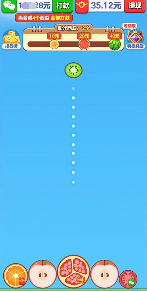 今天又有一点新游戏出来了,服务平台和光年游戏的两个游戏,都有新人福利。水果闯关王是一个2048类的小游戏,合一下就能拿到0.3了。鼠钱虽然名字之前用过,但现在已经改成了合成升级玩法。 一、水果闯关王 服务平台比较喜欢出西瓜主题的游戏,这次的水果闯关王体验还不错,我的奖励在3元左右。开局的时候留意一点,放准一点,可以轻松合出大西瓜的。 合出的大西瓜也是有用的,可以提升兑换比例。 二、鼠钱3 光年的游戏我也不知道怎么说才好,如果是经典的消消乐和成语版本我还是很喜欢的。但其它游戏,特别是那种开局分两次给的游戏,和提现门槛另类的,真的难心动啊。 后续合到一定的等级才可以提现,而且有额外条件,我们拿新人红包就可以了。