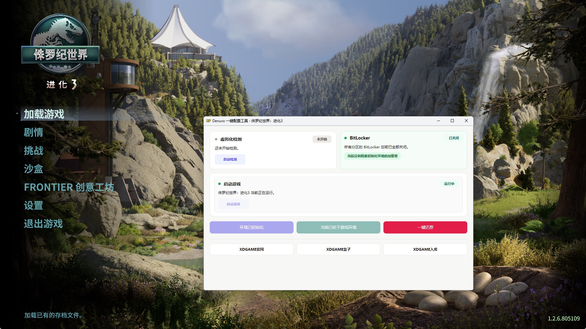 打造您自己的侏罗纪世界,奇妙体验再度升级。幼年恐龙系列首次登场,恐龙世代相传的大业就在你手中。在全球范围内广泛打造史前公园,借助强大的全新创意工具让想象力插上翅膀。 虚拟工具现已进入VBS1.3成熟阶段(想体验的可以试试了)虚拟机只是用来绕D密,所以玩起来和正常版基本没差,几乎没有性能损耗。 没动手能力嫌麻烦不建议搞(其实也没想象那么麻烦),不过你真的能搞懂,D加密游戏有相关补丁全都是可以玩的。 Q1:会不会搞坏电脑 A:不保证所有人硬件都兼容都能玩,考虑清楚在下!部分人存在一定蓝屏/死机/损坏系统风险!玩不了就删不提供任何折腾帮助! Q2:游戏会不会很卡,容易闪退 A:虚拟机仅用来绕D密,几乎不占用性能。这些大作要求配置较高,有些优化也一般,(能玩情况下)如果闪退,你玩正版极大概率也会闪退 Q3:有些游戏个别CPU玩不了吗? A:最近更新的游戏补丁,大部分都能玩,之前游戏的补丁作者也一直不断更新迭代中,这是虚拟机正在迈向成熟阶段,但不保证所有人硬件都能玩考虑清楚在下。 打开游戏之前的环境准备(所有人都必须做 只需要做一次 后续畅玩所有D加密游戏) 进入主板bios设置【先在电脑任务管理器→性能→CPU→右下角看看虚拟化是否已开启 开了就无需在进bios开启】 开启虚拟化: 找到 SVM Mode (AMD) 或 Intel Virtualization Technology (Intel),设置为 Enabled。 注:每个主板具体设置不同 不知道设置可以百度查询或问豆包自己主板型号的相关设置 虚拟化开好后:打开Denuvo.exe 点击软件的初始化,然后重启电脑【开机时点F7 或 手动选择禁用驱动程序强制签名】 重启电脑后继续打开Denuvo.exe点击 启动游戏 → 开始玩耍 ↓ 站长亲测截图 ↓ v1.2.6(Build.22195615)_新版VBS补丁|容量20.8GB|官方简体中文|支持键盘.鼠标.手柄游戏介绍